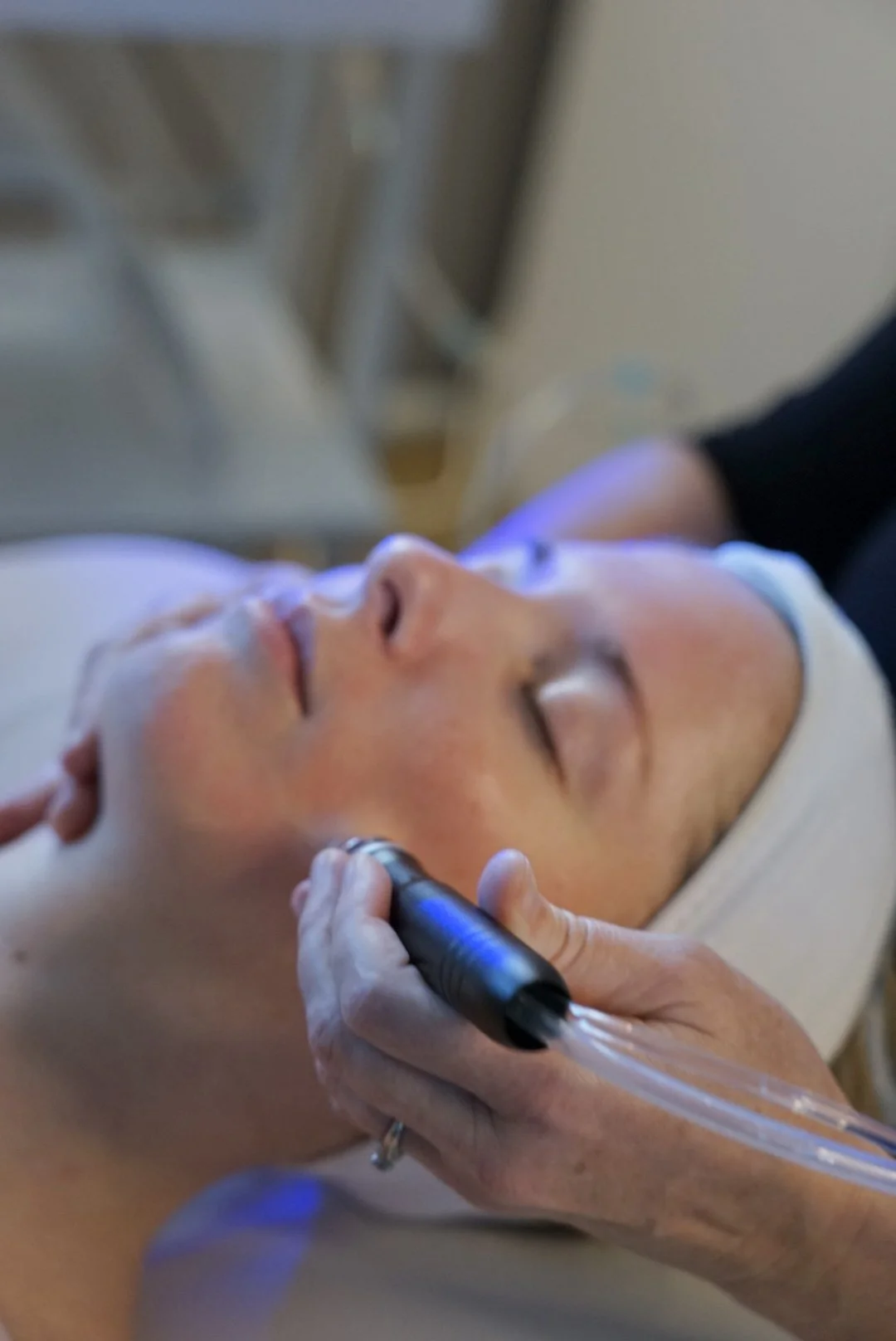 Your microdermabrasion facial begins with a deep cleanse to prep the skin. Using a sea salt wand, we gently exfoliate the outermost layer of dead skin cells—stimulating blood flow and improving texture. The oxygen infusion phase follows, delivering concentrated nutrients and hydration directly into the skin.