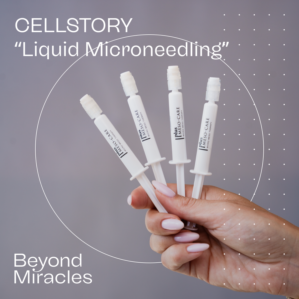 While traditional microneedling uses fine needles to create these micro-injuries, our Cell Story Liquid Microneedling offers a gentler, more comfortable alternative. Instead of puncturing the skin, it uses microscopic Microspears derived from freshwater sponges to stimulate renewal and increase product absorption—making it ideal for sensitive skin types and first-time clients.